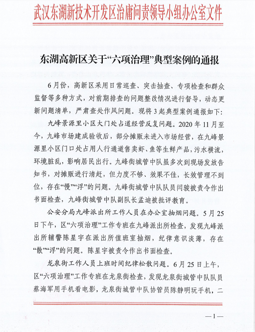 东湖高新区关于“六项治理 ”典范案例的转达